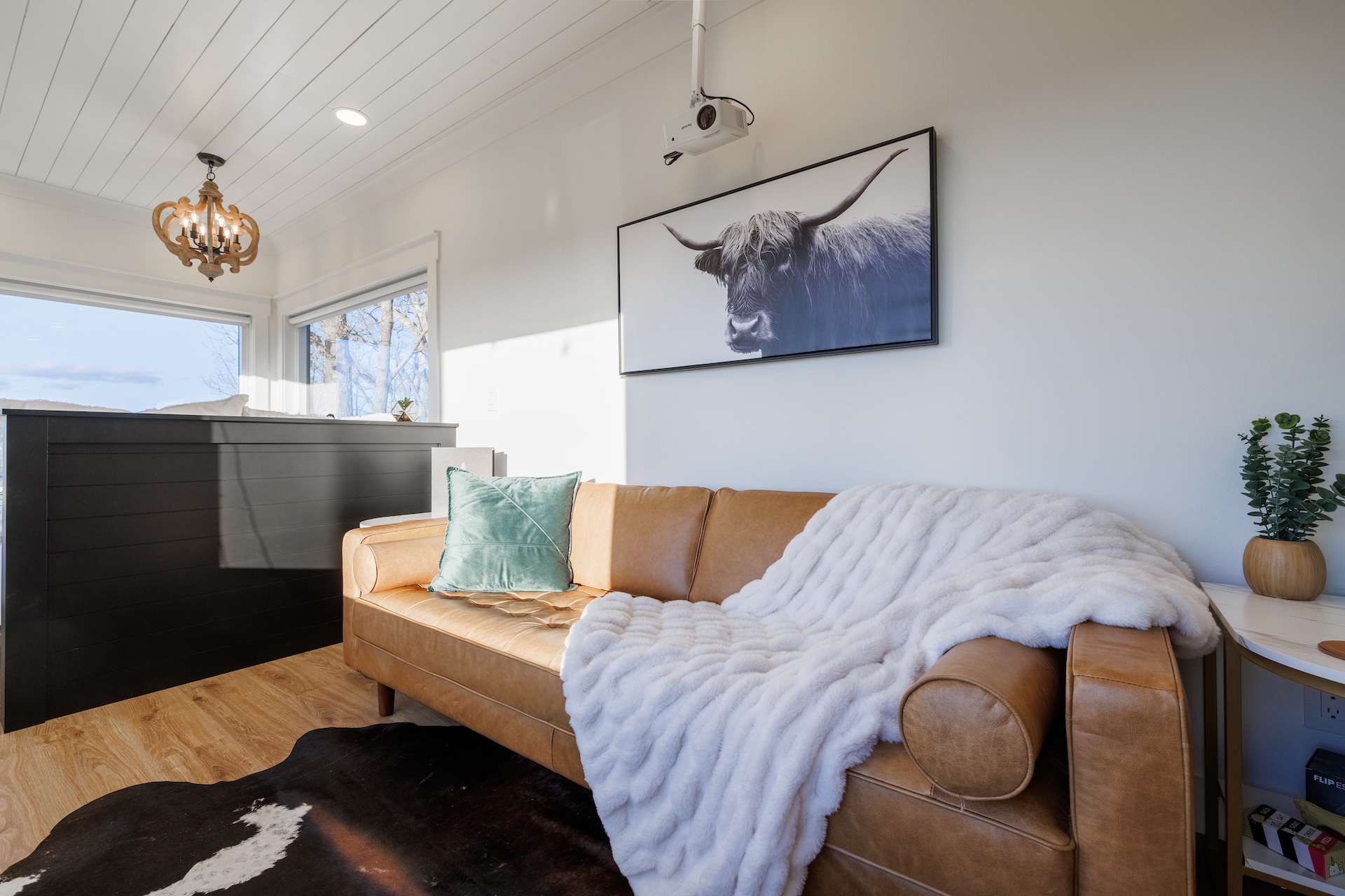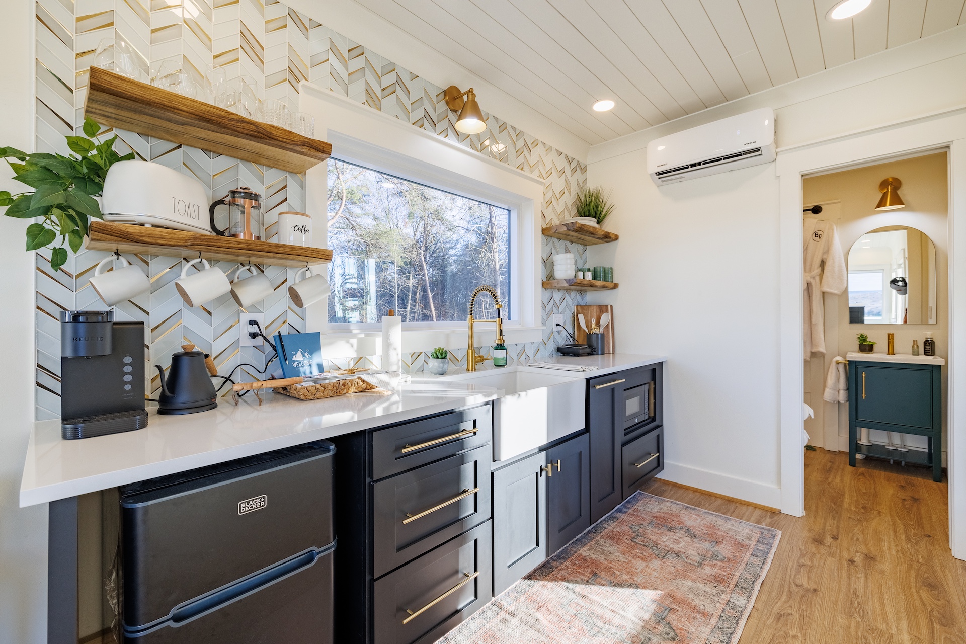 Enjoy complimentary shampoo, conditioner, body wash, coffee, tea, s'mores, trail mix, fire starter, and firewood. We have also provided two wireless phone chargers for your convenience.